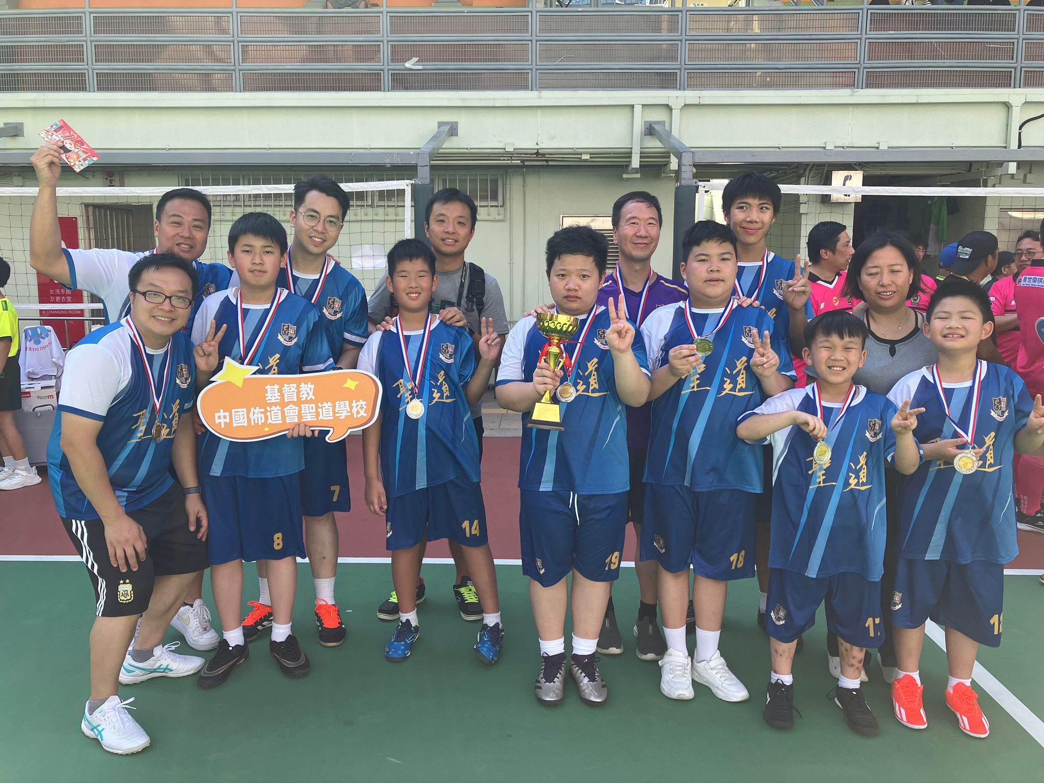 賽場上,同學們團結一致、默契配合,以堅毅與熱情迎戰每一個對手。經過多場緊張而精彩的比賽後,本校足球隊憑著無比的鬥志與毅力,榮獲中度組亞軍殊榮,為學校增添光彩。這份榮譽不僅屬於球員,更屬於全體師生的鼓勵與信念。