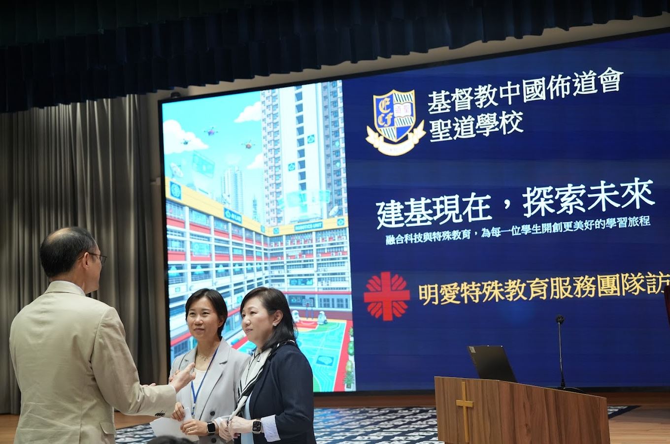 交流活動以「數字教育:建基現在,探索未來」為核心主題。林家儀校長及蔡文禮副校長帶領本校團隊與明愛特校團隊深入了解如何將創新科技融入日常課堂,開拓人工智能AI教學,並與本校管理層就行政管理、數字教育資源開發及學生支援策略等課題交換意見。