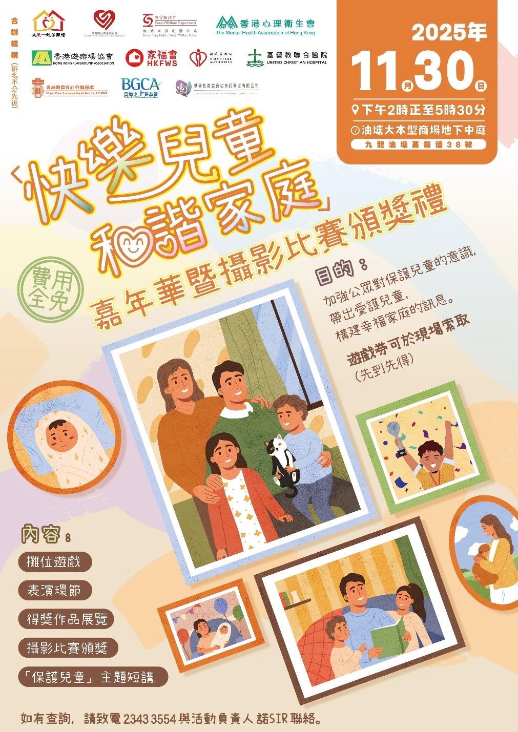 「快樂兒童。和諧家庭」嘉年華暨攝影比賽頒獎禮將於2025年11月30日(週日)舉行,本校「擊封樂團」獲邀於頒獎禮中表演,讓學生展現其音樂才華,以提升學生的自信心並累積表演的經驗。