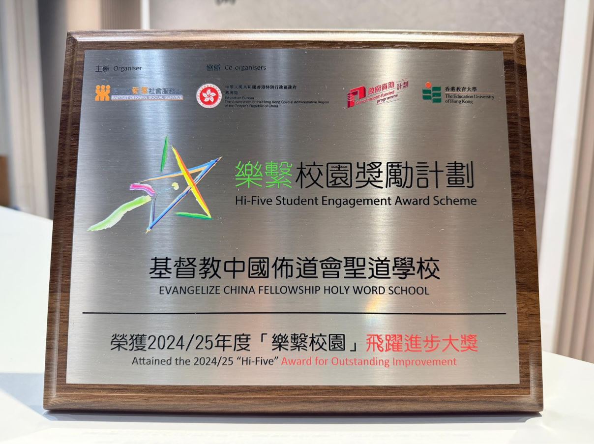 「樂繫校園獎勵計劃」飛躍進步獎本校師生齊心協力,在2024–2025年度「樂繫校園獎勵計劃」中表現卓越,榮獲大會頒發的 「飛躍進步獎」!此項殊榮充分肯定了全校師生在營造積極關愛、共融互助的校園文化方面所付出的努力與取得的顯著成果。